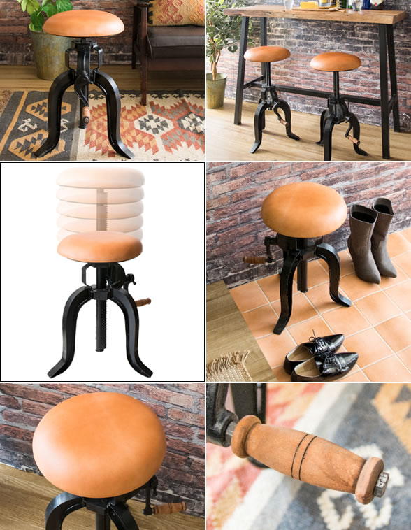 商品名昇降スツール MASALA(マサラ) サイズ幅36.5×奥行き33×高さ51〜71cm 材質本革(山羊革)、天然木(ラッカー塗装)、ウレタン、スチール(エポキシ樹脂粉体塗装) 備考完成品 ※現地の職人がハンドメイドで仕上げているため、大きさ、色味、質感などに個体差がございます。